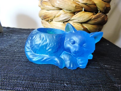 chat Photophore ou porte mini plante (avec mousse) en résine ,bleu ciel