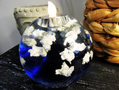photophore grand modèle (presque 1kg de résine ) en résine avec nuages incorporés et effets bleus dans le bas