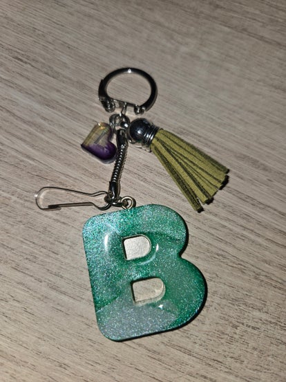 Ajoutez une touche unique et personnalisée à vos clés, sacs ou trousses avec ce superbe porte-clés en résine en forme de lettre B