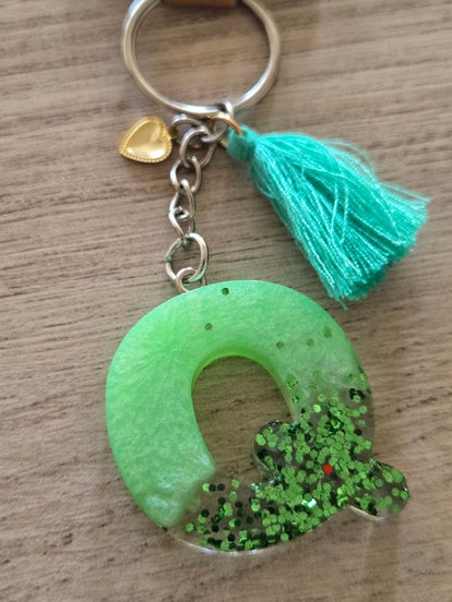 Ajoutez une touche unique et personnalisée à vos clés, sacs ou trousses avec ce superbe porte-clés en résine en forme de lettre Q
