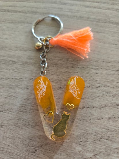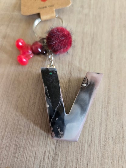 Ajoutez une touche unique et personnalisée à vos clés, sacs ou trousses avec ce superbe porte-clés en résine en forme de lettre V
