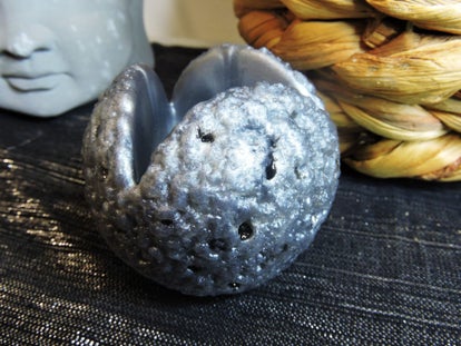 décoration en résine argentée , petit contenant effet roche