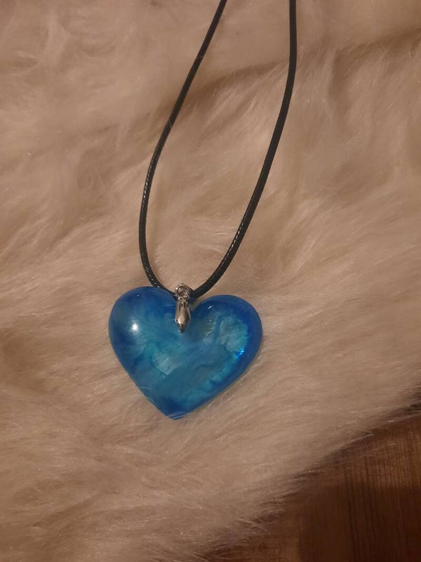 Collier avec pendentif coeur transparent / bleu + cordon cuir