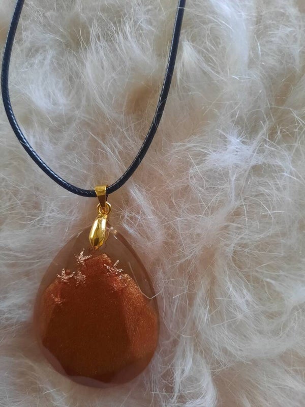 Collier avec pendentif transparent / cuivrée avec étoiles de mer intégrées + cordon cuir