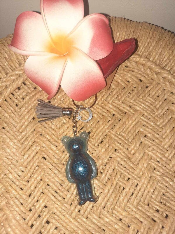 Porte clés Ourson bleu clair et bleu foncé+ pampille + breloque