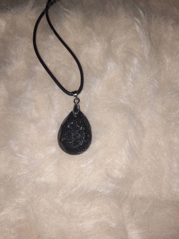 Collier avec pendentif noir avec paillettes argentées intégrées