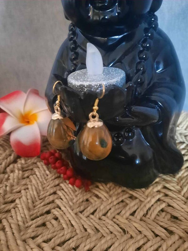 Boucles d'oreilles goutte orange avec fleurs séchées intégrées