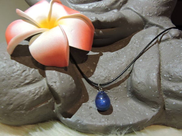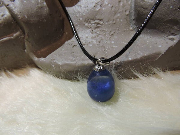 collier avec pendentif goutte bleu et translucide + cordon cuir