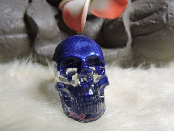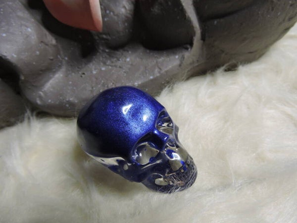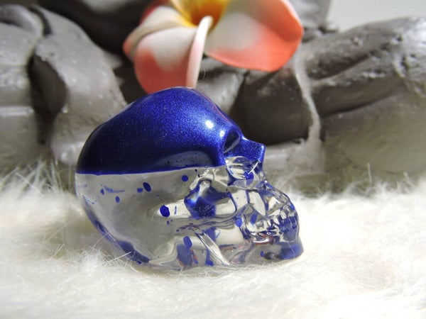 crâne / tête de mort enn résine epoxy transparent et bleu foncé