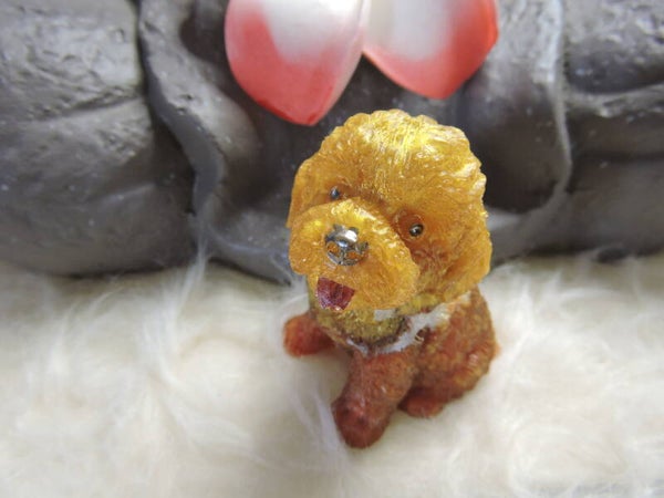 Chien caniche de couleur blanc , doré et cuivré en résine epoxy fait mains