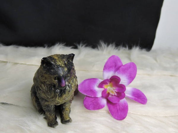 Chat maine coon de couleur noir et doré en résine epoxy fait mains