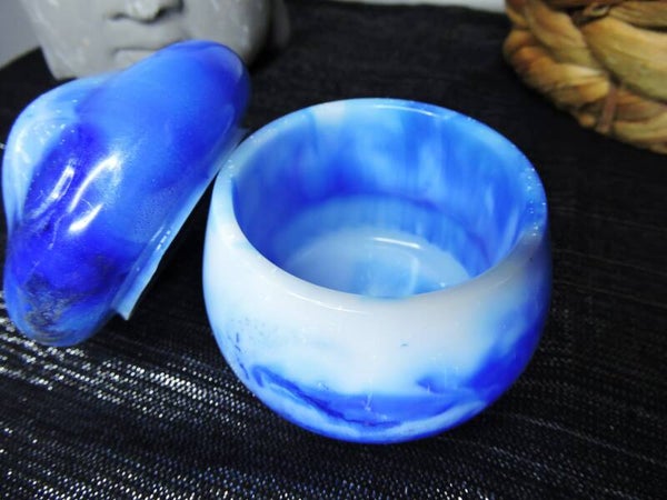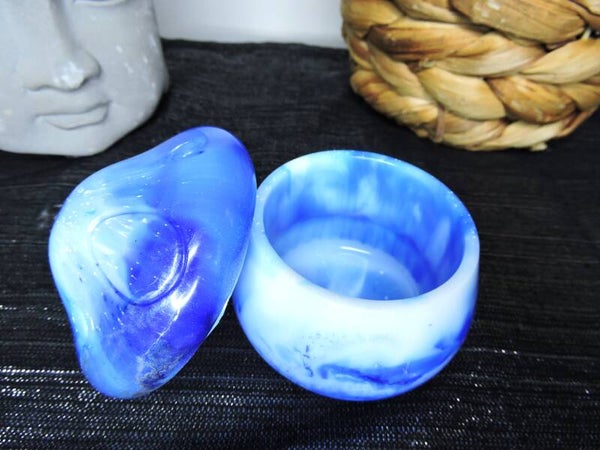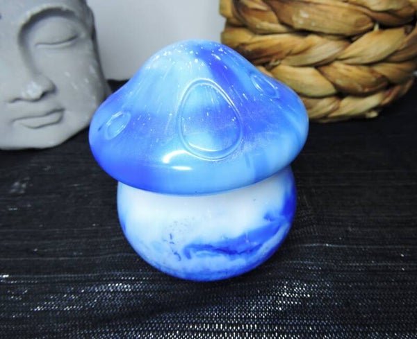 Boite en résine en forme de champignon , dans des nuances de bleu