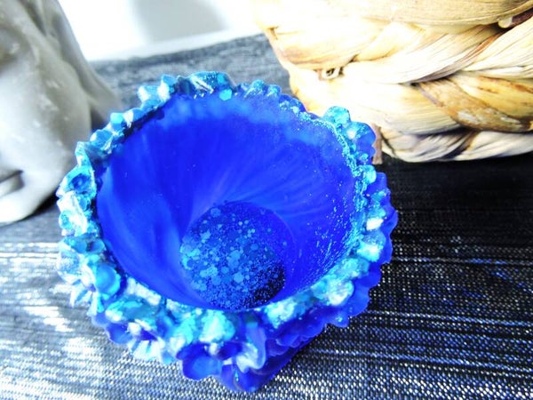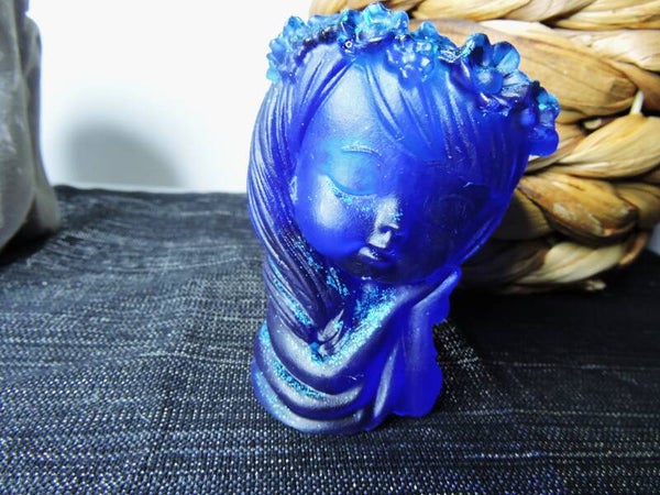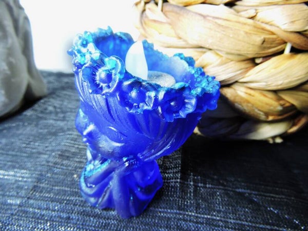 photophore fée en résine , bleue avec paillettes bleues incrustées