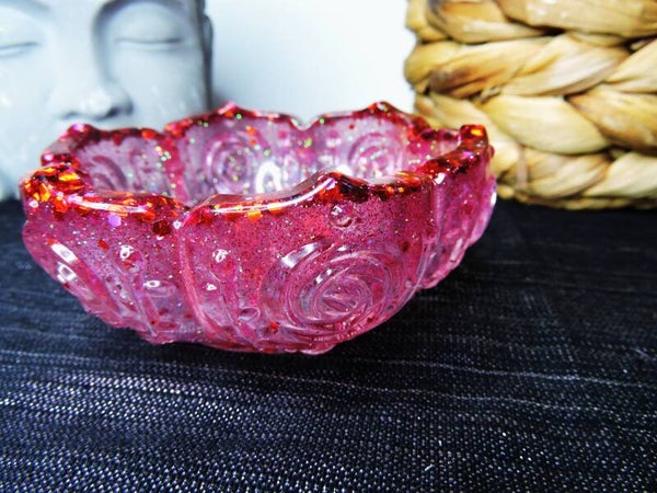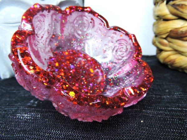 coupelle en résine epoxy , faite main , modèle unique , rouge pailletée