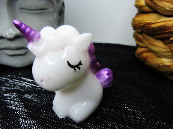 licorne petit modèle en résine blanche avec corne , crinière et queue rose metallisé