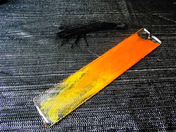 Marque page transparent et orange/jaune + pampille noire