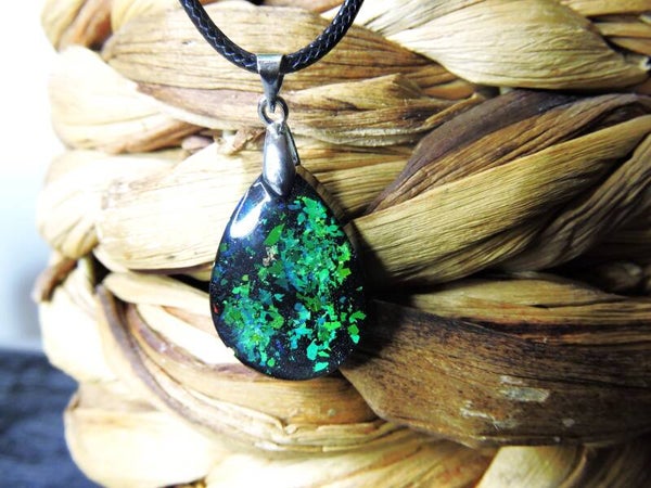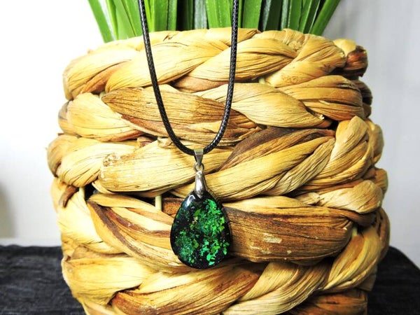 collier noir pailleté vert