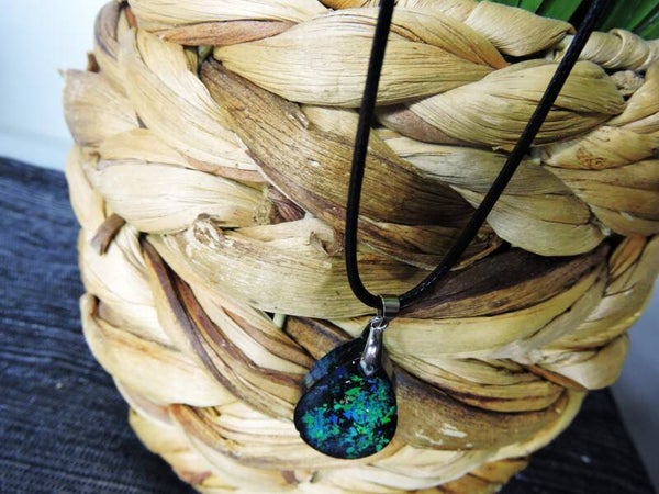 collier en acier et résine sur cordon noir