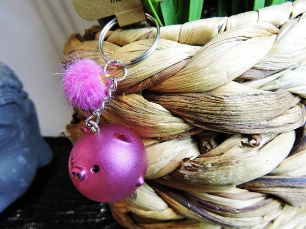 porte clés "z'animobulle" cochon rose +pompom rose