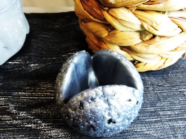 décoration en résine argentée , petit contenant effet roche