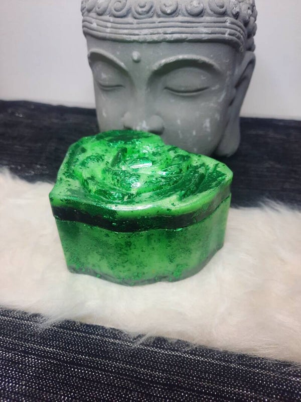 Boite en forme de cœur avec une rose en relief sur le couvercle , en résine en modèle unique