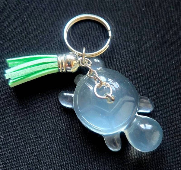 porte clés tortue , translucide à l'ombre et devient bleue au soleil