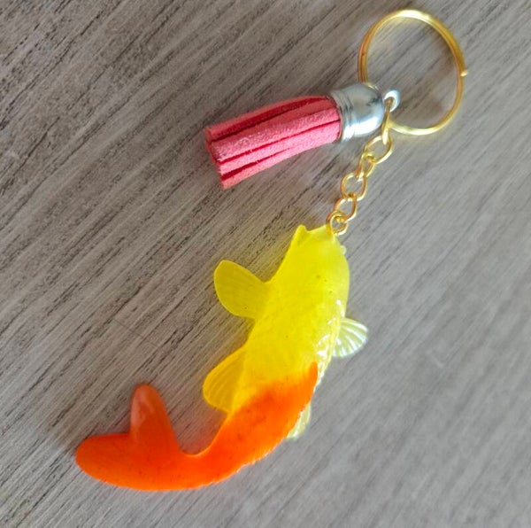 porte clés carpe koÏ rouge et jaune avec pampille