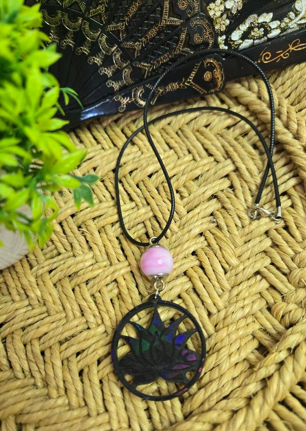 Collier lotus holographique noir