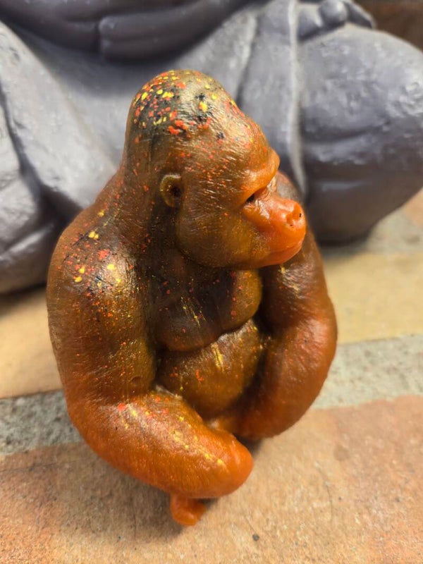 Gorille en résine dans des tons orange/brun