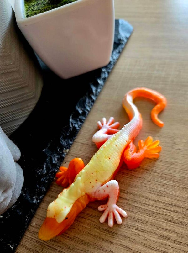 Iguane/ lezard en resine dans des coloris orange,jaune et blanc